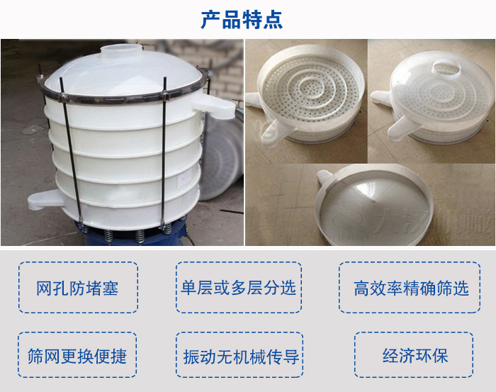塑料振動篩功能及本公司設(shè)計的自動清理放堵網(wǎng)裝置把堵網(wǎng)幾率降到最小。
