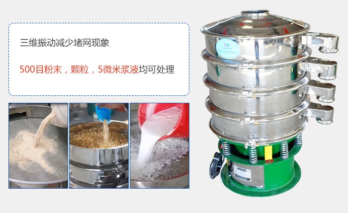 3、篩分物料范圍廣,無(wú)論物料的干與濕,精細(xì)與粗糙,重與輕,只要在500目或0.028m范圍內(nèi)均可篩分,即使物料是液體的或漿狀的只要在600目以內(nèi)也輕松篩分;