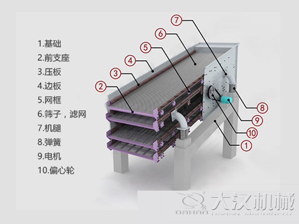 (1)篩箱:由篩框、篩面及其壓緊裝置采用型材焊接或者鉚接而成。