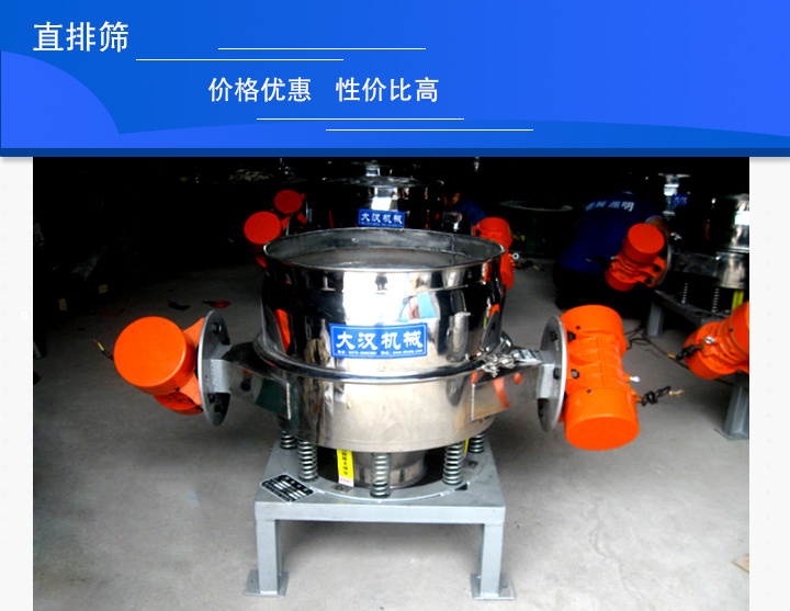 直排篩是一種多用途的,適用于快速大量西顆粒狀物料分級(jí)篩分設(shè)備,有單電機(jī)和雙電機(jī)兩種布置方式,其大的特點(diǎn)是物料在篩機(jī)中停留時(shí)間短,出料迅速,安裝工位低,多用于面粉、淀粉、洗衣粉、金屬粉、添加劑、化工粉料等行業(yè)的顆粒、粉狀的粗略篩分,其處理量大,易于產(chǎn)線結(jié)合。用戶在選購(gòu)時(shí)一定要選對(duì)廠家,今天小編就為大家推薦一個(gè)直排篩廠家——大漢機(jī)械。