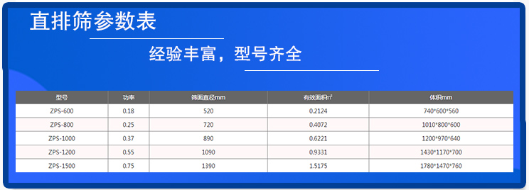 大漢自建廠已經(jīng)經(jīng)過了28個(gè)年頭,時(shí)間非常長(zhǎng),能夠生產(chǎn)的直排篩的型號(hào)一應(yīng)俱全,可以滿足大多數(shù)客戶的需要,具體的直排篩參數(shù)如上表所示。