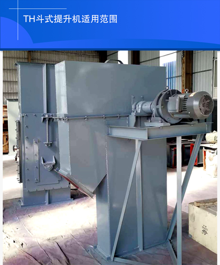 TH斗式提升機(jī)適用松散密度<1.5t/m³的粉狀、粒狀、小塊狀的無磨琢性、半琢磨性的物料。輸送物料溫度不超過250℃,相比TD斗式提升機(jī)來說,耐熱性更好,TD斗式提升機(jī)只能提升溫度小于60℃的物料。