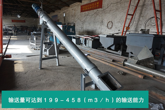(2)傾斜螺旋輸送機(jī)的輸送量大,其輸送量可達(dá)到199-458(m3/h)的輸送能力,的同時(shí)螺旋輸送機(jī)的轉(zhuǎn)速也相對(duì)較高、其特別適用于傾斜和垂直輸送的輸送角度。