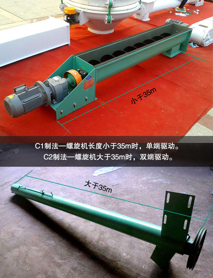 C1制法—螺旋機長度小于35m時,單端驅(qū)動。