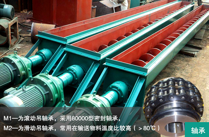 M1—為滾動吊軸承,采用80000型密封軸承,軸蓋上另有防塵密封結(jié)構(gòu),常用在不易加油,不加油或油對物料有污染的地方,密封效果好,吊軸承壽命長,輸送物料溫度≤80℃。