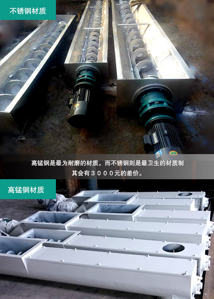 其產(chǎn)品來自于新鄉(xiāng)大漢機械有限公司,新鄉(xiāng)大漢的產(chǎn)品在生產(chǎn)時使用了,市場上好的高錳鋼和不銹鋼材質(zhì)而成,高錳鋼是為耐磨的材質(zhì),而不銹鋼則是衛(wèi)生的材質(zhì)制。運用好材質(zhì)才會有好質(zhì)量。與此同時GL型螺旋輸送機就會有3000元的差價。