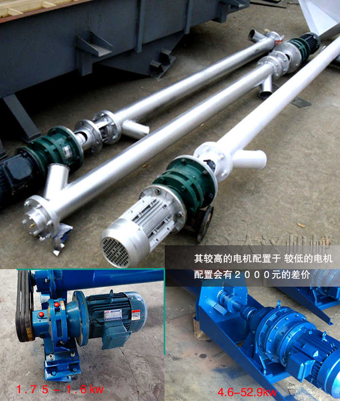 其產(chǎn)品的輸送能力主要來自于,GL行螺旋輸送機所配備的電機,新鄉(xiāng)大漢機械的電機配備都是高功率的電機配置,其較高的電機配置就在4.6-52.9kw以上,其電機的功率較高,相對螺旋輸送機的輸送能力也不會過低,較低的電機配置在1.75-1.6以上的電機配置,與此同在電機上也會有2000元的差價。