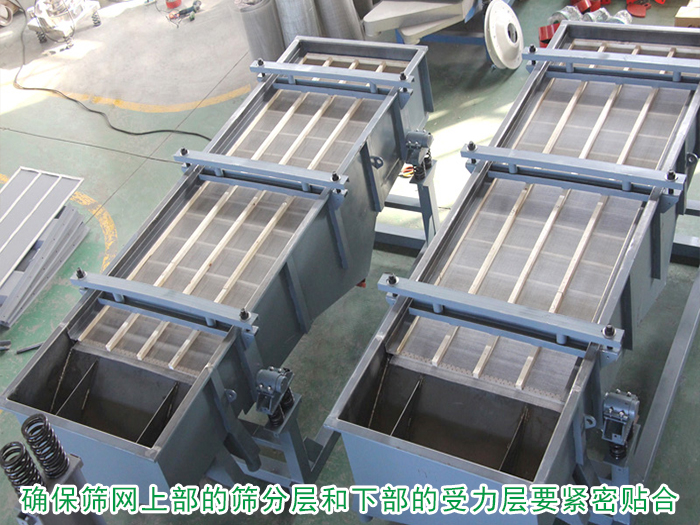 篩網(wǎng)一般有上部的篩分層和下部的受力層,要求這2層之間緊密貼合,如果篩網(wǎng)預(yù)張緊工藝差,當(dāng)篩網(wǎng)底部的受力層繃緊時(shí),篩分層沒有拉緊,那么做篩機(jī)工作時(shí)篩網(wǎng)上下顫動(dòng)的距離過大,和篩框接觸部分不能有效壓緊,這也是引起篩網(wǎng)損壞過快的原因之一。