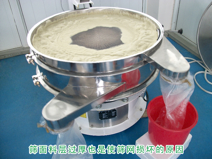 投料速度要均勻恒定,次投料量過大,篩面一次承重過大,篩網(wǎng)會(huì)因突然間沖擊過大導(dǎo)致疲勞,從而影響篩網(wǎng)使用壽命。