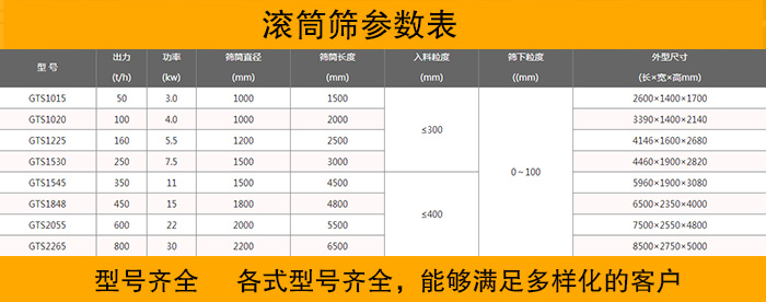 大漢作為專業(yè)的滾筒篩生產(chǎn)廠家,積累了大量的生產(chǎn)經(jīng)驗(yàn)和技術(shù),能夠生產(chǎn)的滾筒篩型號(hào)和種類多種多樣,滿足各種各樣的用戶需求,并且可以在客戶提出特殊的需要時(shí),也完全有能力設(shè)計(jì)出適合客戶的方案,定制其需要的產(chǎn)品。