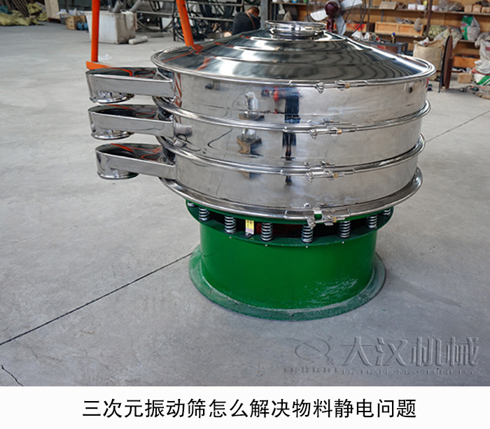 因為靜電的是由于三次元振動篩在工作時,物料與物料、篩網(wǎng)和篩框之間的振動摩擦而產(chǎn)生的,繼而引起了卡堵網(wǎng)的問題。但是在篩框上增加一根接地線,就可以將產(chǎn)生的靜電導入地面,解決掉靜電的問題。