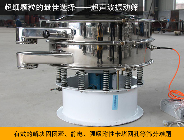 超聲筆振動(dòng)篩是在傳統(tǒng)振動(dòng)篩的基礎(chǔ)上安裝了一個(gè)低振幅、高頻率的超聲振動(dòng)波(機(jī)械波),以改善超微細(xì)粉體的篩分性能,廣泛應(yīng)用于制藥、冶金、化工、選礦、食品等要求精細(xì)篩分過(guò)濾的行業(yè)。篩分過(guò)濾精度高,能有效的解決因團(tuán)聚、靜電、強(qiáng)吸附性卡堵網(wǎng)孔等篩分難題,是當(dāng)前網(wǎng)孔堵塞有效的解決方法。針對(duì)超細(xì)顆粒合金粉末高精細(xì)、高靜電、高密度、輕比重的特性,超聲波振動(dòng)篩可以輕而易舉的解決,是極其適合的設(shè)備。