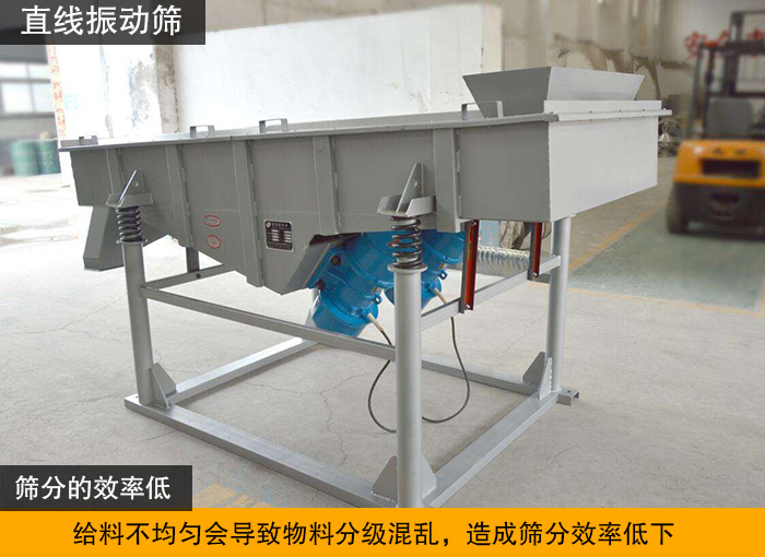 進(jìn)料不均勻時(shí),就會(huì)出現(xiàn)篩面一邊有料一邊無料的情況,從而降低了整個(gè)篩面的使用率,造成產(chǎn)量達(dá)不到要求的問題。除此之外,由于進(jìn)料不均勻,一側(cè)物料堆積太厚。一旦物料堆積厚度過大,將影響篩分效果精細(xì)度。達(dá)不到預(yù)期篩分效果。