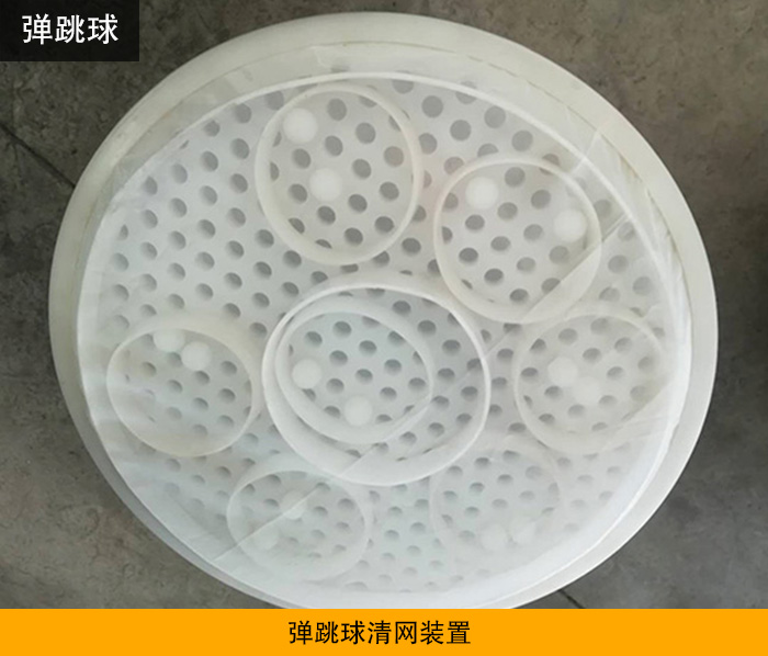 彈跳球清網(wǎng)裝置是為常見的清網(wǎng)裝置。其形狀為圓形,材質(zhì)可分為橡膠材質(zhì)與硅膠材質(zhì)兩種。其工作原理是均勻的分布在托球板上,一般十公分內(nèi)分布5-8個(gè)。篩機(jī)在振動(dòng)篩分的同時(shí)彈跳球也隨之跳躍擊打篩網(wǎng),從而起到清網(wǎng)的目的,常見的使用機(jī)型有旋振篩。
